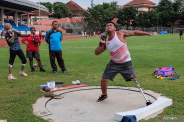 Sejumlah atlet para atletik National Paralympic Committee of Indonesia (NPC Indonesia) mengikuti pemusatan latihan nasional (Pelatnas) di Stadion UNS Solo, Jawa Tengah, Kamis (5/1/2023). Pelatnas tersebut sebagai persiapan untuk bertanding pada ASEAN Para Games Kamboja 2023 dan ASIAN Para Games Hangzhou 2023. ANTARA FOTO/Maulana Surya/foc.