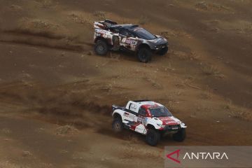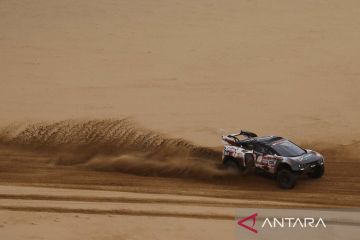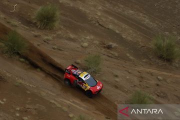 Pembalap Bahrain Raid Xtreme Sebastien Loeb dan co-driver Fabian Lurquin memacu kecepatan kendaraannya pada etape 7 Reli Dakar dari Riyadh ke Al Duwadimi, Arab Saudi (7/1/2023). ANTARA FOTO/REUTERS/Hamad I Mohammed/aww.