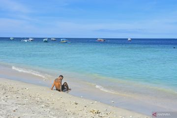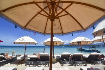 Sejumlah wisatawan asing berjemur di pantai wisata Gili Trawangan, Desa Gili Indah, Kecamatan Pemenang, Tanjung, Lombok Utara, NTB, Selasa (10/1/2023). Pemerintah Provinsi NTB menargetkan angka kunjungan wisatawan ke NTB pada 2023 sebanyak 1,5 juta orang wisatawan, baik dari mancanegara maupun nusantara. ANTARA FOTO/Ahmad Subaidi/foc.