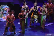 Panglima TNI Laksamana TNI Yudo Margono (kanan) memerankan tokoh Bima Sena dalam pagelaran wayang orang dengan lakon Pandowo Boyong di Teater Jakarta, Taman Ismail Marzuki, Jakarta, Minggu (15/1/2023). Pagelaran wayang orang tersebut diperankan oleh pejabat utama TNI dan Polri, artis serta sejumlah tokoh di tanah air dalam rangka memperingati hari Dharma Samudera TNI AL pada 15 Januari. ANTARA FOTO/Indrianto Eko Suwarso/foc.