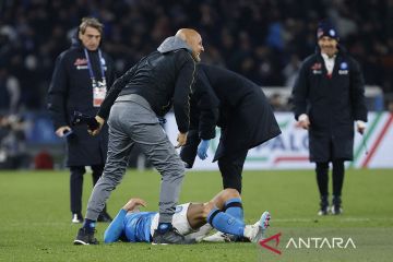 Pelatih klub Napoli Luciano Spalletti berselebrasi setelah timnya berhasil menang melawan AS Roma dalam pertandingan lanjutan Liga Italia di Stadion Diego Armando Maradona, Naples, Italia, Senin (30/1/2023) dinihari. Napoli berada di puncak klasemen dengan poin 53 setelah berhasil menundukkan AS Roma dengan skor 2-1. ANTARA FOTO/Reuters-Ciro De Luca/nym.