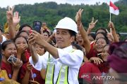 Presiden Joko Widodo (tengah) berswafoto dengan siswa SMP di sela peresmian Bendungan Tamblang di Desa Sawan, Buleleng, Bali, Kamis (2/2/2023). Presiden meresmikan bendungan yang dibangun sejak tahun 2018 tersebut dengan anggaran Rp820 miliar yang memiliki kapasitas tampung 5,1 juta m3 dan luas genangan 29,8 ha yang digunakan untuk irigasi sawah dan mengurangi risiko banjir. ANTARA FOTO/Nyoman Hendra Wibowo/rwa.