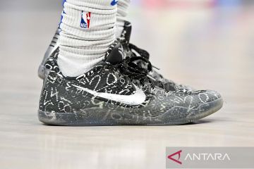 Detail sepatu pebasket Dallas Mavericks Luka Doncic (77) jelang laga NBA melawan New Orleans Pelicans di the American Airlines Center, Dallas, Texas, AS (2/2/2023). ANTARA FOTO/Jerome Miron-USA TODAY Sports/aww.