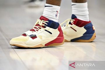 Detail sepatu milik pebasket New Orleans Pelicans Herbert Jones (5) jelang laga NBA melawan Dallas Mavericks di the American Airlines Center, Dallas, Texas, AS (2/2/2023). ANTARA FOTO/Jerome Miron-USA TODAY Sports/aww.