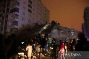 Orang-orang mencari korban di bawah reruntuhan bangunan pascagempa di Diyarbakir, Turki, Senin (6/2/2023). Gempa berkekuatan M 7,8 terjadi di Turki pada Senin (6/2/2023) waktu setempat. ANTARA FOTO/REUTERS/Sertac Kayar/rwa.