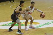 Pebasket RANS PIK Basketball Club Januar Kuntara berusaha melewati pebasket Bali United Basketball Abraham R Wenas (kiri) pada pertandingan Indonesian Basketball League (IBL) 2023 Seri III di DBL Arena, Surabaya, Jawa Timur, Minggu (12/2/2023). RANS PIK Basketball Club mengalahkan Bali United Basketball dengan skor akhir 83-72. ANTARA FOTO/Moch Asim/foc.