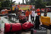 Presiden Joko Widodo (kedua kanan) didampingi Menko PMK Muhadjir Effendy (kedua kiri) mendapat penjelasan dari Kepala Basarnas Marsekal Madya TNI Henri Alfiandi (kiri) tentang peralatan SAR di sela Rapat Kerja Basarnas dan FKP3 Nasional 2023 di Kantor Pusat Basarnas, Jakarta, Kamis (16/2/2023). Rapat kerja dalam rangka HUT ke-51 Basarnas tersebut mengangkat tema Cepat Tanggap Selamatkan Jiwa. ANTARA FOTO/Sigid Kurniawan/tom.