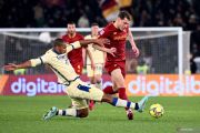Pesepak bola AS Roma Andrea Belotti (kanan) berebut bola dengan pesepak bola Hellas Verona Isak Hien dalam laga lanjutan Liga Italia, di Stadion Olimpico, Roma, Italia, Minggu (18/2/2023). Gol tunggal Ola Solbakken menangkan Roma atas Hellas Verona dan untuk sementara mennepati posisi ketiga dalam klasemen. ANTARA FOTO/Reuters-Alberto Lingria/hp.