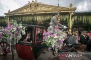 Kanjeng Gusti Pangeran Adipati Arya (KGPAA) Mangkunegara X menaiki kereta kencana saat mengikuti kirab pada acara Tingalan Jumenengan Mangkunagoro X di Pura Mangkunegaran, Solo, Jawa Tengah, Rabu (1/3/2023). Tingalan Jumenengan atau peringatan kenaikan tahta Mangkunegaran Kanjeng Gusti Pangeran Adipati Arya (KGPAA) Mangkunegara X yang pertama tersebut ditandai dengan tarian Bedhaya Anglir Mendhung dan kirab mengelilingi Pura Mangkunegaran. ANTARA FOTO/Mohammad Ayudha/rwa.