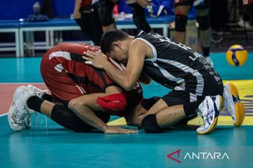 Pebola voli Jakarta Lavani Allo Bank Fahri Septian (kiri) bersama Irpan (kanan) melakukan selebrasi usai timnya mengalahkan Surabaya BIN Samator pada pertandingan seri kedua putaran kedua final four PLN Mobile Proliga 2023 di GOR Jatidiri, Semarang, Jawa Tengah, Minggu (5/3/2023). Jakarta Lavani Allo Bank mengalahkan Surabaya BIN Samator dengan skor 3-0 (25-19, 25-22, 28-26). ANTARA FOTO/Aji Styawan/tom.