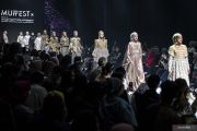 Sejumlah model memperagakan busana dari Rya Baraba dalam perhelatan MUFFEST+ 2023 Road To IN2MOTIONFEST (Indonesia International Modest Fashion Festival) di Jakarta, Selasa (7/3/2023). Muslim Fashion Festival (MUFFEST+) 2023 tersebut diikuti lebih dari 200 desainer dan berlangsung mulai 7-10 Maret 2023. ANTARA FOTO/Aprillio Akbar/foc.
