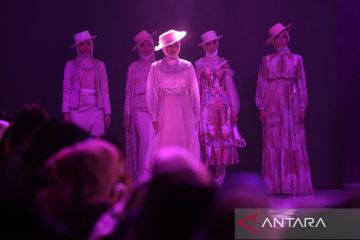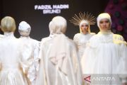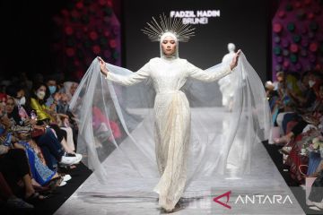 Model mengenakan busana karya desainer Fadzil Hadin asal Brunei dalam Muslim Fashion Festival (MUFFEST+) 2023 di The Westin Jakarta, Rabu (8/3/2023). MUFFEST+ yang mengangkat tema Unlock Global Opportunities tersebut menampilkan karya busana muslim dari 200 desainer lokal dan delapan desainer dari negara tetangga seperti Singapura, Laos, Kamboja, Brunei, dan Thailand yang didukung oleh ASEAN Fashion Designers Showcase (AFDS). ANTARA FOTO/Akbar Nugroho Gumay/tom.