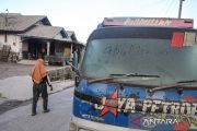 Warga mengendarai sepeda motor di Dusun Trono yang dilanda hujan abu, Krinjing, Dukun, Magelang, Jawa Tengah, Senin (13/3/2023). Awan panas guguran Gunung Merapi mengakibatkan hujan abu vulkanis di desa yang terletak di sisi barat Gunung Merapi itu. ANTARA FOTO/Hendra Nurdiyansyah/nym.