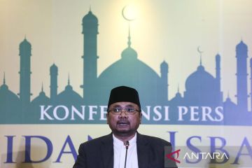 Menteri Agama Yaqut Cholil Quomas memberikan keterangan pers penetapan 1 Ramadan 1444 H di Kantor Kementerian Agama, Jakarta, Rabu (22/3/2023). Pemerintah memutuskan 1 Ramadhan 1444 H jatuh pada Kamis (23/3). ANTARA FOTO/Rivan Awal Lingga/aww.