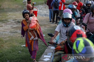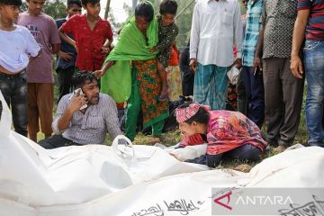 Sejumlah warga berduka setelah terjadi kecelakaan dan merenggut korban jiwa dalam arus mudik di Munshiganj, Bangladesh, Kamis (20/4/2023). Pemudik ramai keluar dari kota Dhaka untuk merayakan Idul Fitri di kampung halamannya bersama keluarga. ANTARA FOTO/Reuters/Mohammad Ponir Hossain/nym.