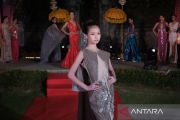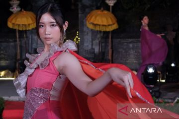Seorang model memperagakan busana saat peluncuran Mister and Miss Teenager Universe di Pecatu, Badung, Bali, Senin (1/5/2023). Bali akan menjadi tuan rumah dalam ajang kontes remaja Mister and Miss Teenager Universe pada bulan Februari 2024 yang diikuti peserta dari 30 negara sekaligus untuk memperkenalkan Indonesia ke kancah internasional dan membantu pemulihan ekonomi Bali pascapandemi COVID-19. ANTARA FOTO/Nyoman Hendra Wibowo/tom.