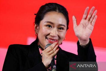 Calon perdana menteri Pheu Thai, Paetongtarn Shinawatra, putri mantan Perdana Menteri Thaksin Shinawatra, memberikan keterangan pers kepada media, setelah TPS ditutup, pada hari pemilihan umum di Bangkok, Thailand, (14/5/2023). ANTARA FOTO/REUTERS/Athit Perawongmetha/aww.