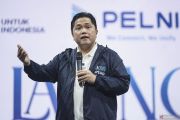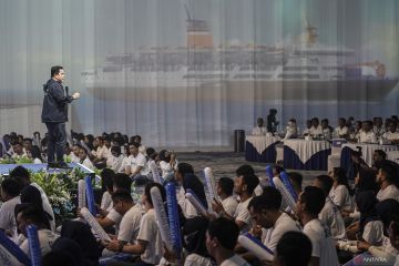 Menteri BUMN Erick Thohir menyampaikan kata sambutan pada peluncuran logo dan tagline baru PT PELNI (Persero) di JIExpo, Kemayoran, Jakarta, Kamis (25/5/2023). PT Pelayaran Nasional Indonesia atau PT PELNI (Persero) resmi meluncurkan logo baru yang menggambarkan lautan menggantikan logo lama yang telah digunakan selama 71 tahun serta tagline baru yakni "We Connect, We Unify". ANTARA FOTO/Dhemas Reviyanto/hp.