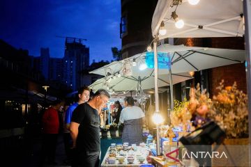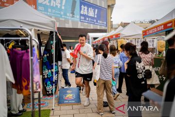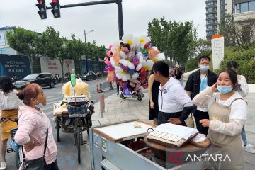 Warga mengunjungi pasar di sebuah jalan di Shanghai, China (27/5/2023). ANTARA FOTO/REUTERS/Aly Song/aww.