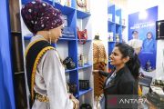 Pengunjung melihat produk-produk UMKM dari berbagai daerah pada Indonesia Maju Expo & Forum di Taman Mini Indonesia Indah, Jakarta, Kamis (1/6/2023). Kementerian Dalam Negeri menggelar kegiatan Indonesia Maju Expo dan Forum 2023 itu mengusung tema Transformasi Ekonomi dan Nasionalisme untuk Indonesia Berkelanjutan yang diikuti 118 peserta dari tanggal 1-4 Juni 2023 guna mempromosikan produk-produk unggulan daerah. ANTARA FOTO/Asprilla Dwi Adha/nym.