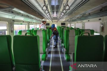 Petugas memeriksa kursi kereta feeder atau pengumpan penumpang Kereta Cepat Jakarta Bandung (KCJB) yang terparkir di Dipo Lokomotif Stasiun Bandung, Jawa Barat, Senin (12/62023). PT Kereta Api Indonesia (KAI) menyiapkan sarana dan fasilitas pendukung berupa kereta api, peron khusus, dan ruang tunggu khusus untuk penumpang KCJB yang beroperasi dari Stasiun Kereta Cepat Padalarang menuju Stasiun Bandung dan sebaliknya. ANTARA FOTO/Raisan Al Farisi/tom.