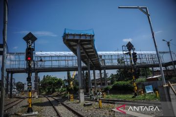 Pekerja menyelesaikan pembangunan jembatan khusus menuju peron Kereta Cepat Jakarta Bandung (KCJB) di Stasiun Bandung, Jawa Barat, Senin (12/62023). PT Kereta Api Indonesia (KAI) menyiapkan sarana dan fasilitas pendukung berupa kereta api, peron khusus, dan ruang tunggu khusus untuk penumpang KCJB yang beroperasi dari Stasiun Kereta Cepat Padalarang menuju Stasiun Bandung dan sebaliknya. ANTARA FOTO/Raisan Al Farisi/tom.