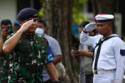 Kepala Staf TNI Angkatan Laut (KSAL) Laksamana TNI Muhammad Ali (kiri) memberi penghormatan saat pembukaan Latihan Armada Jaya XLI TA 2023 di Auditorium Gedung Sudomo, Komando Pembinaan Doktrin Pendidikan dan Latihan TNI Angkatan Laut (Kodiklatal), Surabaya, Jawa Timur, Senin (12/6/2023). Latihan Armada Jaya XLI TA 2023 melibatkan 1.916 personel TNI AL dalam geladi posko yang berlangsung 12 - 20 Juni 2023 dan 5.900 personel TNI AL dalam latihan manuver lapangan yang berlangsung 23 Juni - 2 Juli 2023. ANTARA FOTO/Didik Suhartono/hp.