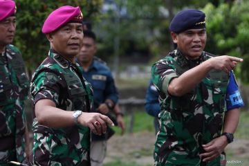Kepala Staf TNI Angkatan Laut (KSAL) Laksamana TNI Muhammad Ali (kanan) berjalan bersama Komandan Komando Pembinaan Doktrin Pendidikan dan Latihan TNI AL (Dankodiklatal) Letjen TNI Marinir Suhartono (kedua kiri) saat pembukaan Latihan Armada Jaya XLI TA 2023 di Auditorium Gedung Sudomo, Komando Pembinaan Doktrin Pendidikan dan Latihan TNI Angkatan Laut (Kodiklatal), Surabaya, Jawa Timur, Senin (12/6/2023). Latihan Armada Jaya XLI TA 2023 melibatkan 1.916 personel TNI AL dalam geladi posko yang berlangsung 12 - 20 Juni 2023 dan 5.900 personel TNI AL dalam latihan manuver lapangan yang berlangsung 23 Juni - 2 Juli 2023. ANTARA FOTO/Didik Suhartono/hp.