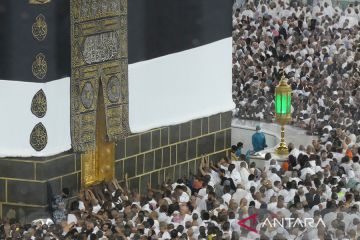 Jamaah calon haji Indonesia bersiap melakukan umrah sunah di Masjidil Haram, Mekah, Arab Saudi, Selasa (13/6/2023). Kemenag mengimbau jamaah calon haji Indonesia tidak melaksanakan umrah wajib pada siang hari karena tingginya suhu udara di Mekah, Arab Saudi yang mencapai sekitar 45 derajat celcius. ANTARA FOTO/Wahyu Putro A/rwa.