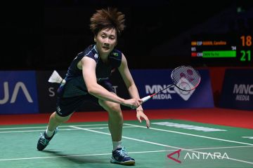 Pebulu tangkis tunggal putri China Chen Yu Fei mengembalikan kok ke arah lawannya pebulu tangkis Spanyol Carolina Marin dalam babak final Indonesia Open 2023 di Istora Senayan, Jakarta, Minggu (18/6/2023). Chen Yu Fei berhasil menjadi juara Indonesia Open 2023 setelah memenangi pertandingan dengan dua gim langsung (21-18, 21-19). ANTARA FOTO/Aditya Pradana Putra/nym.