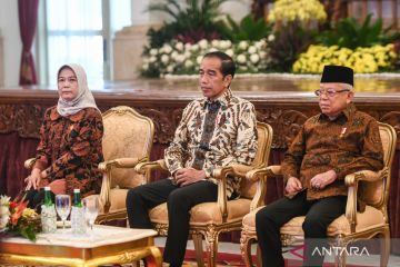 Presiden Joko Widodo (tengah) dan Wakil Presiden Ma'ruf Amin (kanan) bersama Ketua Badan Pemeriksa Keuangan (BPK) Isma Yatun (kiri) menghadiri penyampaian Laporan Hasil Pemeriksaan atas Laporan Keuangan Pemerintah Pusat (LHP LKPP) tahun 2022 di Istana Negara, Jakarta, Senin (26/6/2023). BPK memberikan opini wajar tanpa pengecualian (WTP) atas LKPP tahun 2022. ANTARA FOTO/Hafidz Mubarak A/aww.