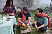 Koki asal Qatar Hassan Al Ibrahim (tengah) bersama Ketua Komunitas Aku Cinta Masakan Indonesia (ACMI) Santhi Serad (kiri) dan Top tiga MasterChef Indonesia Musim ke sembilan Arsyan Dwianto (kanan) memasak ikan arsik khas Batak Toba pada saat Culinary Journey Qatar-Indonesia 2023 Year of Culture di Medan, Sumatera Utara, Senin (26/6/2023). Kegiatan memasak tersebut bertujuan untuk saling memperkenalkan cara mengolah makanan khas daerah masing-masing dan memperdalam pemahaman antarbangsa lewat makanan. ANTARA FOTO/Fransisco Carolio/foc.