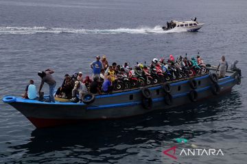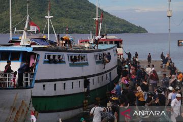 Sejumlah pemudik menggunakan jasa transportasi antarpulau di Pelabuhan Bastiong, Kota Ternate, Maluku Utara, Rabu (28/6/2023). Para pemudik antarpulau yang tinggal di Kota Ternate tersebut kembali ke kampung halaman mereka untuk merayakan hari raya Idul Adha 1444H bersama keluarga . ANTARA FOTO/Andri Saputra/nym.