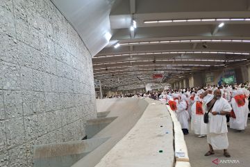 Jamaah haji melempar jumroh aqobah di Jamarat, Mekah, Arab Saudi, Rabu (28/6/2023). Lempar jumrah aqobah merupakan salah satu syarat yang wajib dilakukan pada ibadah haji sebagai simbol pengusiran setan yang pernah dilakukan Nabi Ibrahim AS. ANTARAFOTO/Wahyu Putro A/hp.