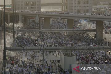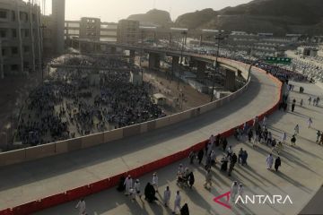 Jamaah haji berjalan usai melempar jamrah hari kedua di Jamarat, Mina, Arab Saudi, Kamis (29/6/2023). Jutaan jamaah haji memadati kawaaan Jamarat untuk melaksanakan lempar jamrah Ula, Wustha, Aqabah. ANTARA FOTO/Wahyu Putro A/tom.