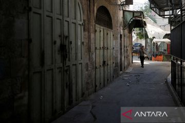 Seorang pria Palestina berjalan melewati pertokoan yang tutup selama pemogokan umum atas operasi militer Israel di Jenin, Hebron,Tepi Barat, Palestina, Selasa (4/7/2023). Israel melakukan aksi militer besar-besaran untuk menduduki Jenin yang mengakibatkan sejumlah warga Palestina tewas. ANTARA FOTO/REUTERS/Mussa Qawasma/Spt.