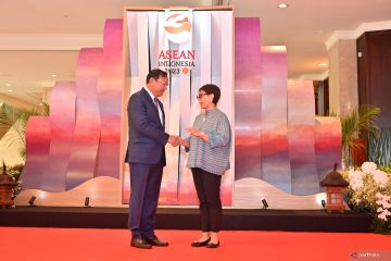 Menteri Luar Negeri Retno Marsudi (kanan) menyambut kedatangan Menlu Brunei Darussalam Dato Erywan Pehi Yusof (kiri) sebelum Pertemuan ke-56 Menteri Luar Negeri ASEAN (AMM) di Jakarta, Selasa (11/7/2023). Pertemuan tersebut membahas pembangunan masyarakat ASEAN, kerjasama dengan mitra ASEAN serta mempersiapkan KTT ASEAN ke-43 pada bulan September mendatang. ANTARA FOTO/M Risyal Hidayat/hp.