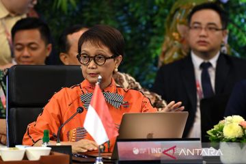 Menlu Retno Marsudi menghadiri Pertemuan Menteri Luar Negeri ASEAN (PMC) bersama Menlu India Subrahmanyam Jaishankar di Jakarta, Kamis (13/7/2023). ANTARA FOTO/Muhammad Iqbal/nym.