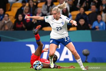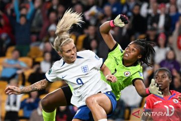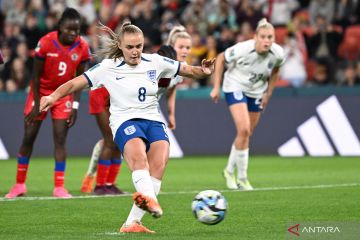 Pesepak bola putri Inggris Georgia Stanway mencetak gol dari titik penalti ke gawang Haiti dalam laga Grup D Piala Dunia Wanita 2023 di Brisbane Football Stadium, Brisbane, Australia, Sabtu (22/7/2023). Inggris menang 1-0. ANTARA FOTO/REUTERS/Dan Peled/foc.