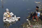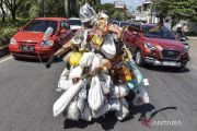 Pegiat lingkungan dari Forum Tasikmalaya Penyelamatan Sungai (FORTAS TAI) memakai pakaian dari sampah saat menggelar aksi unjuk rasa di Kota Tasikmalaya, Jawa Barat, Kamis (27/7/2023). Pada hari sungai nasional tersebut, mereka mendesak pemda setempat untuk peduli terhadap kondisi sungai yang tercemar mikroplastik dan limbah industri sehingga membahayakan kehidupan biota sungai, serta mengajak kepada masyarakat untuk tidak membuang sampah di sungai. ANTARA FOTO/Adeng Bustomi/nym.