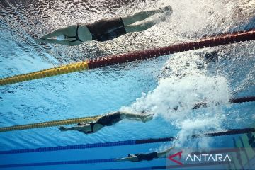 Beberapa perenang beraksi pada nomor penyisihan gaya punggung 200m putri Kejuaraan Akuatik Dunia di Marine Messe Fukuoka Hall A, Fukuoka, Jepang (28/7/2023). ANTARA FOTO/REUTERS/Marko Djurica/aww.