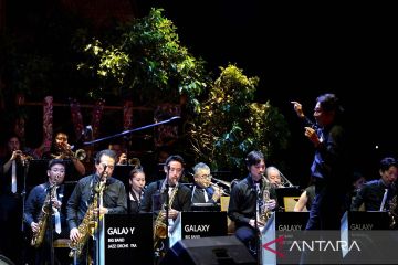 Kelompok musik Galaxy Big Band tampil menghibur penonton Ubud Village Jazz Festival 2023 di kawasan Ubud, Gianyar Bali, Sabtu (29/7/2023). Festival yang memadukan pertunjukan musik jazz dengan alam dan suasana pedesaan Ubud itu, menampilkan sejumlah musisi jazz dari berbagai negara diantaranya Kevin Hays Trio, Pere Bujosa Trio, Amanda Lee Swingtet dan Galaxy Big Band. ANTARA FOTO/Fikri Yusuf/aww.