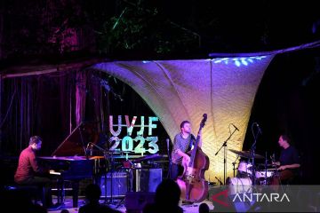 Kelompok musik asal Spanyol Pere Bujosa Trio tampil menghibur penonton Ubud Village Jazz Festival 2023 di kawasan Ubud, Gianyar Bali, Sabtu (29/7/2023). Festival yang memadukan pertunjukan musik jazz dengan alam dan suasana pedesaan Ubud itu, menampilkan sejumlah musisi jazz dari berbagai negara diantaranya Kevin Hays Trio, Pere Bujosa Trio, Amanda Lee Swingtet dan Galaxy Big Band. ANTARA FOTO/Fikri Yusuf/aww.