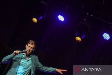 Penyanyi Henk Kraaijeveld dari grup musik jaz asal Belanda Henk Kraaijeveld Quintet tampil dalam pertunjukan musik di Erasmus Huis, Jakarta, Selasa (1/8/2023). Pertunjukan musik yang diadakan Kedutaan Besar Belanda, Erasmus Huis tersebut Henk Kraaijeveld Quintet membawakan sejumlah lagu dan aransemen musik yang bernuansa petualangan, balada maupun jaz modern. ANTARA FOTO/Galih Pradipta/tom.