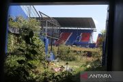Semak belukar tumbuh dan menutupi area lapangan sepak bola di Stadion Kanjuruhan, Malang, Jawa Timur, Rabu (9/8/2023). Sejak peristiwa tragedi Kanjuruhan, lapangan sepak bola tersebut tidak pernah digunakan lagi sehingga ditumbuhi semak belukar, sementara pelaksanaan renovasi hingga kini belum pasti. ANTARA FOTO/Ari Bowo Sucipto/Spt.