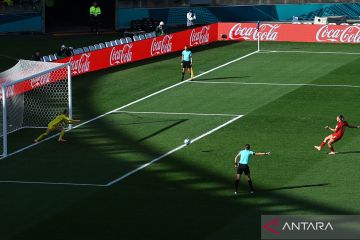 Pesepak bola putri Spanyol Mariona Caldentey mencetak gol ke gawang Belanda melalui titik penalti dalam laga perempat final Piala Dunia Wanita di Wellington Regional Stadium, Wellington, Selandia Baru, Jumat (11/8/2023). Spanyol menang 2-1 dan lolos ke semi final. ANTARA FOTO/REUTERS/Molly Darlington/foc.