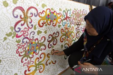 Perajin menunjukkan pembuatan batik khas Kalimantan Utara pada pameran Gerakan Nasional (Gernas) Bangga Buatan Indonesia (BBI) dan Bangga Berwisata di Indonesia (BBWI) 2023 di Lanud Anang Busra, Tarakan, Kalimantan Utara, Minggu (20/8/2023). Kegiatan membatik dengan corak khas Kalimantan Utara tersebut untuk mengenalkan proses pembuatan batik serta mempromosikan batik khas Kaltara. ANTARA FOTO/Yulius Satria Wijaya/Spt.