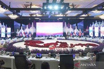 Suasana pertemuan ke-10 ASEAN tingkat menteri keuangan dan gubernur bank sentral (AFMGM) di Jakarta, Jumat (25/8/2023). Pertemuan tersebut diantaranya membahas ketahanan keuangan dan ekonomi, pertumbuhan ekonomi inklusif, dan pembiayaan transisi untuk mendukung keuangan berkelanjutan dan ekonomi hijau. ANTARA FOTO/Hafidz Mubarak A/nym.