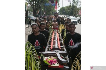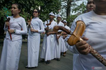 Peserta membawa keris koleksi pada Kirab Pusaka Museum Keris Nusantara "Mebumikan Keris Indonesia" di Solo, Jawa Tengah, Jumat (25/8/2023). Kirab tersebut dalam rangka peringatan enam tahun Museum Keris Nusantara sekaligus mengenalkan kembali keris sebagai karya seni dan benda budaya warisan nusantara yang telah diakui UNESCO sebagai warisan budaya dunia non-bendawi manusia. ANTARA FOTO/Mohammad Ayudha/hp.