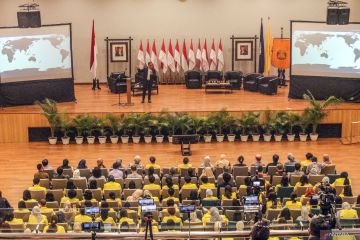 Gubernur DKI Jakarta periode 2017-2022 Anies Baswedan mengisi kuliah kebangsaan di FISIP Universitas Indonesia, Depok, Jawa Barat, Selasa (29/8/2023). Kuliah Kebangsaan FISIP UI tersebut mengambil tema Hendak ke Mana Indonesia Kita? Gagasan, Pengalaman dan Rancangan Para Pemimpin Masa Depan. ANTARA FOTO/Yulius Satria Wijaya/hp.